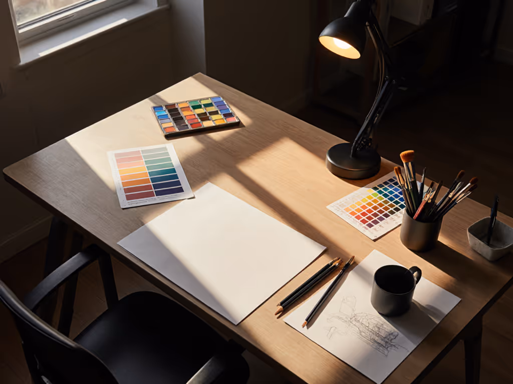 The 6000K cool white is ideal for daylight-equivalent tasks and keeps you alert during detail work. But if you finish work at 8 PM and use the lamp into the evening, the cool tone may interfere with circadian wind-down. The Luminos offers no warm-dim option or CCT adjustment, a limitation if your studio doubles as a hobby space.